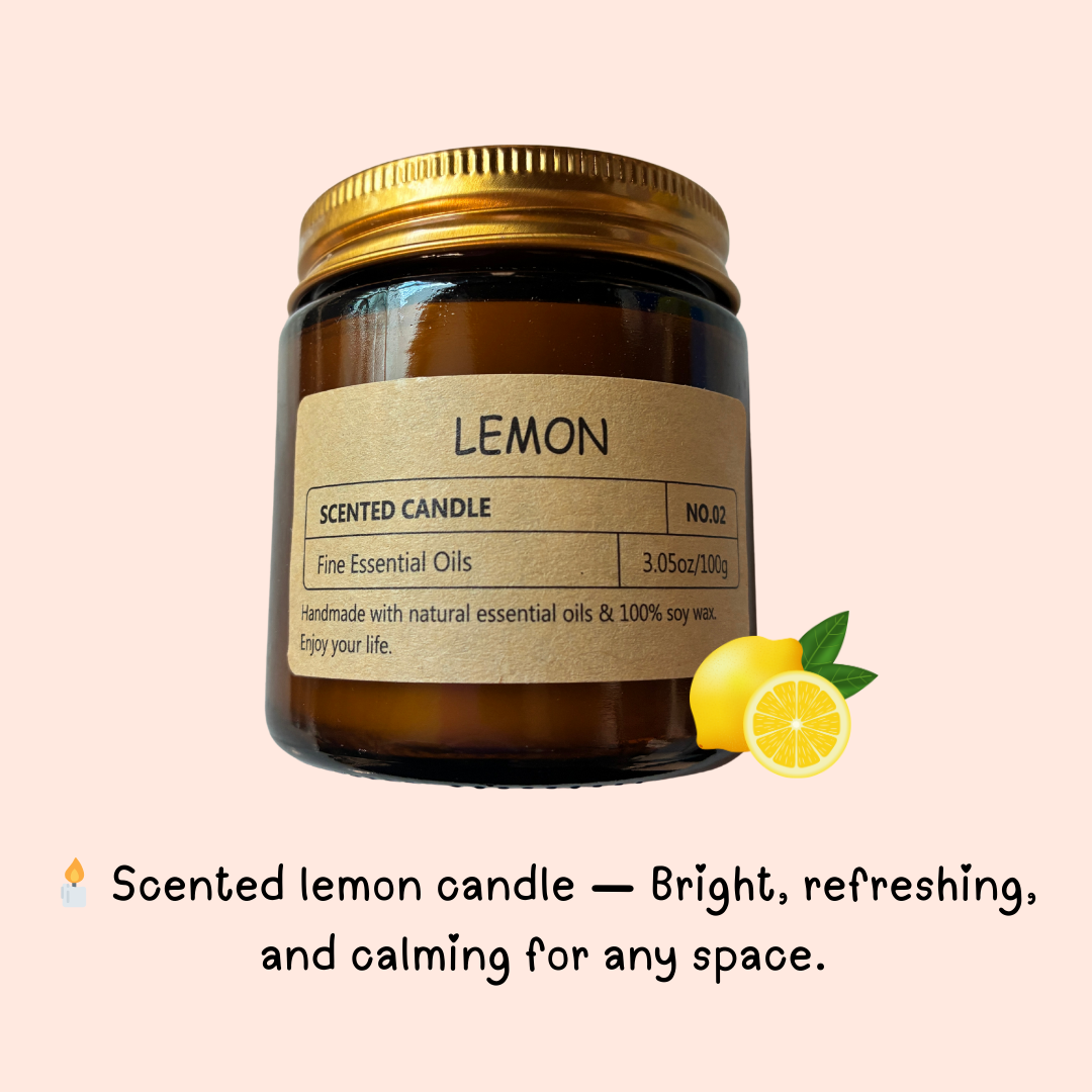 - Scented Lemon Candle — Hand-poured with pure essential oils, offering a bright, calming scent