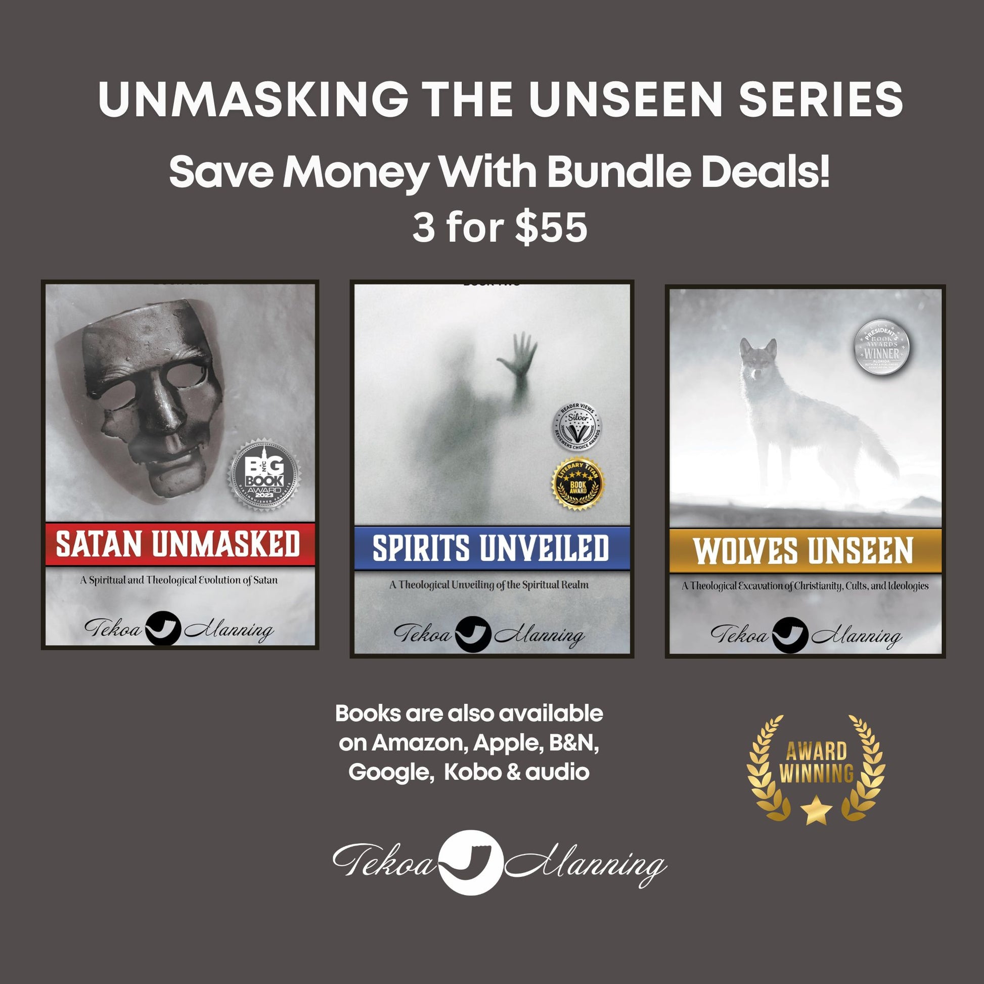 This award-winning series includes Satan Unmasked, Spirits Unveiled, Wolves Unseen and King Revealed—each book addressing spiritual deception, false teachings, and the unseen forces influencing culture, theology, and the modern church. Written for believers seeking clarity, depth, and biblical grounding, this series challenges readers to re-evaluate theology and move beyond fear and into discernment, wisdom, and spiritual authority rooted in Messiah.